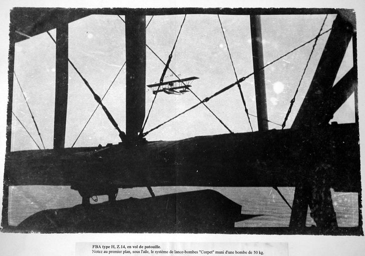 Vue d'un hydravion FBA type H, Z. 14, en vol de patrouille, d'après la collection Daniel Dahiot, exposition maison prébendale de Saint-Pol-de-LéonImmatriculation