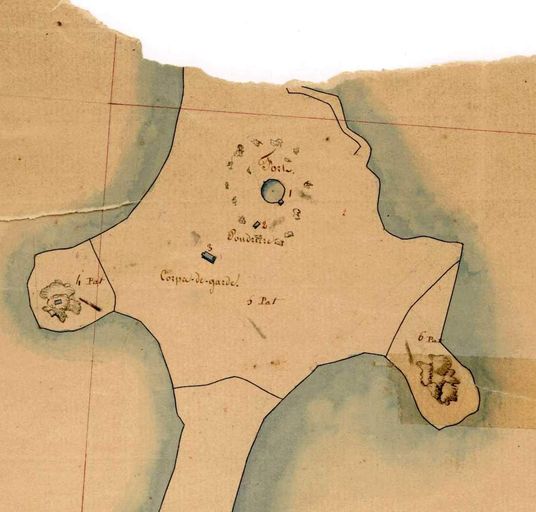 Extrait du cadastre parcellaire de Carantec : batterie de côte de l’Île Callot (fort, corps de garde et poudrière), 1828Immatriculation