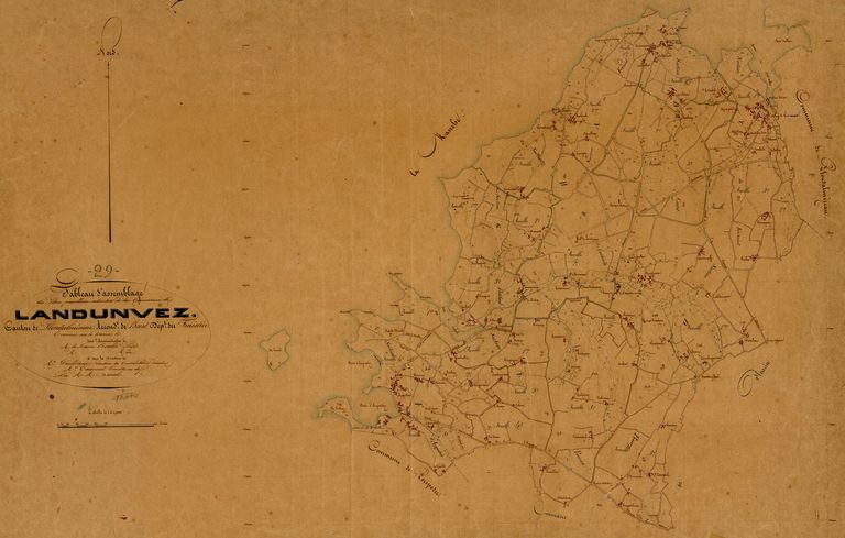 Tableau d'assemblage du cadastre ancien de la commune de Landunvez, 1844, Archives Départementales du FinistèreImmatriculation