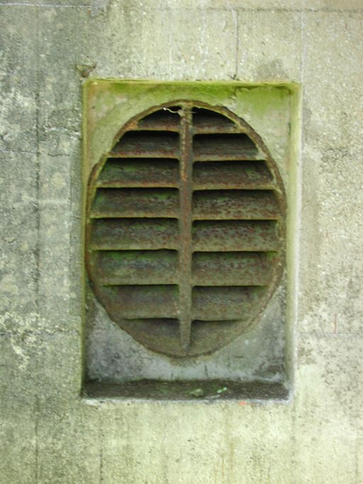 Vue de l'une des grilles de ventilation (état en 2002)Immatriculation