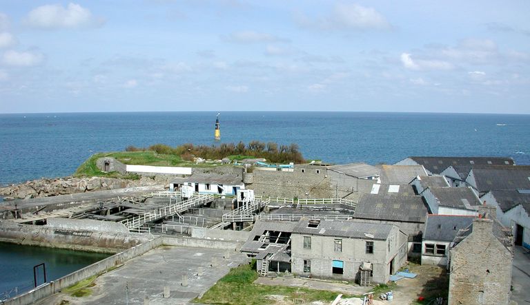 Vue générale de la pointe de Bloscon et du Fort Bloscon depuis la chapelle Sainte-Barbe (état en 2002). Au premier plan, les viviersImmatriculation