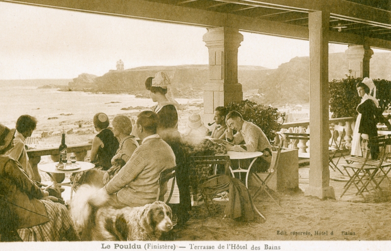 Terrasse de l'Hôtel des Bains. Carte postale, vers 1925 (coll.part.)Immatriculation