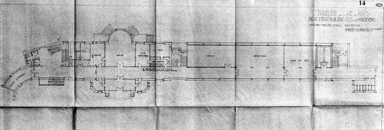Plan d'aménagement provisoire du rez-de-chaussée, dessin, par H.-M. Delaage et Robin architectes, [1936] (A. C. Rennes)Immatriculation