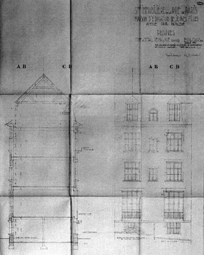 Coupe et détail de façade, dessin, par H.-M. Delaage et Robin architectes, 31 août 1936 (A. C. Rennes)Immatriculation