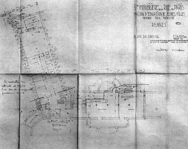 Plan du sous-sol, dessin, par H.-M. Delaage et Robin architectes, 5 septembre 1936 (A. C. Rennes)Immatriculation