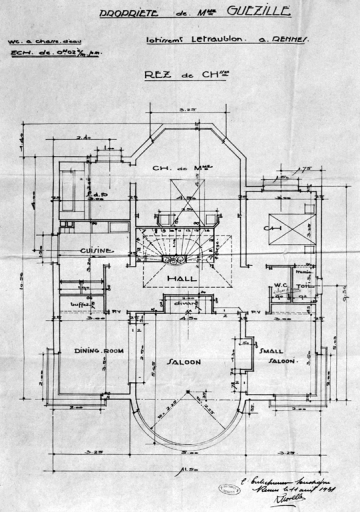 Plan du rez-de-chaussée de la maison construite en 1931 par l'entrepreneur Novello (A. C. Rennes)Immatriculation