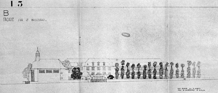 Façade sur le boulevard, dessin, par H.-M. Delaage et Robin architectes, 31 août 1936 (A. C. Rennes)Immatriculation