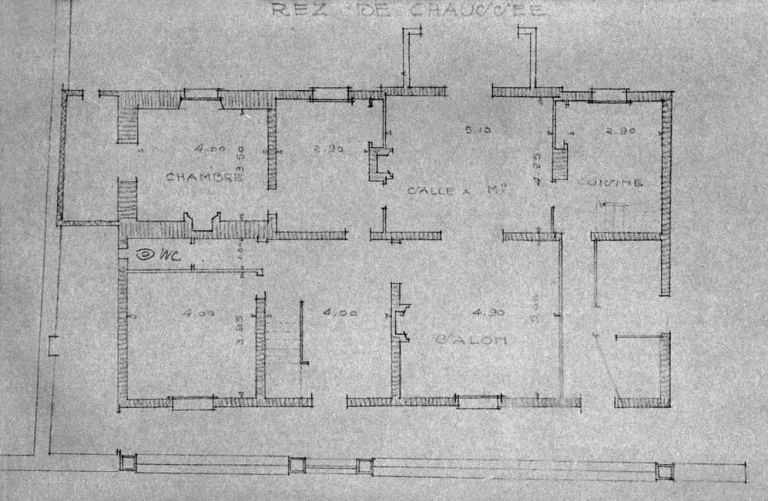 Plan du rez-de-chaussée, état ancien, par Jean Gallacier, 1933 (A. C. Rennes)Immatriculation
