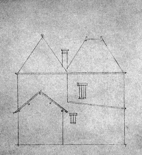 Elévation de la façade ouest, état ancien, par Jean Gallacier, 1933 (A. C. Rennes)Immatriculation