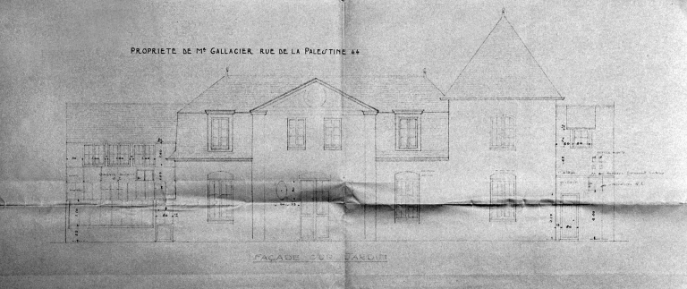 Façade sur le jardin projetée, dessin, par Jean Gallacier, 1933 (A. C. Rennes)Immatriculation