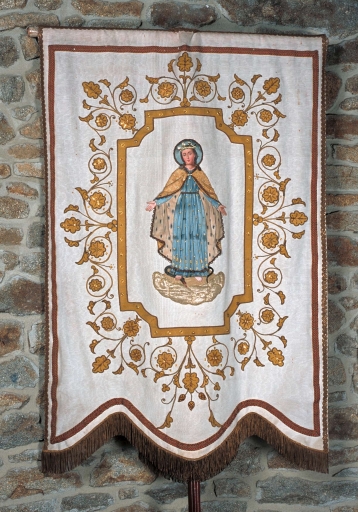 Bannière de procession paroissiale : saint Etienne, Immaculée Conception (Tressé fusionnée en Mesnil-Roc'h en 2019),