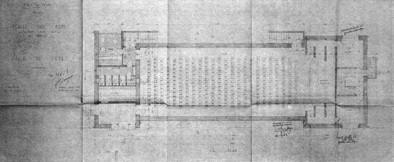 Cercle Paul-Bert. Salle des Fêtes. Plan du rez-de-chaussée, 1953 (A. C. Rennes)Immatriculation