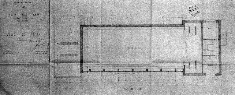 Cercle Paul-Bert. Salle des Fêtes. Plan du rez-de-chaussée, 1953 (A. C. Rennes)Immatriculation