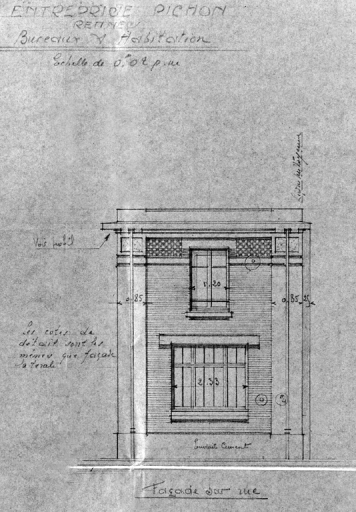Elévation de la façade ouest, sur rue, vers 1925 (A. C. Rennes)Immatriculation