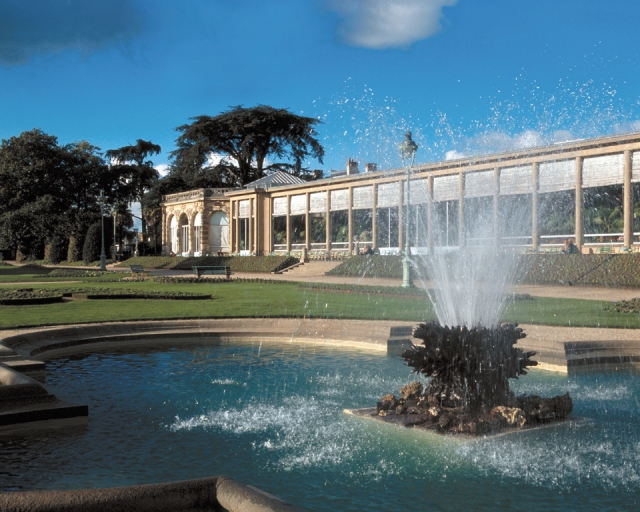 Les serres, les bassins et le kiosque à musique, à l'arrière planImmatriculation