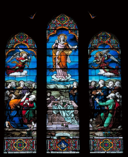 Ensemble des 2 verrières à personnages des baies 111 à 112 : Ascension, Assomption,