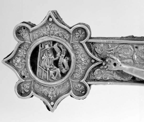 Face antérieure, fleuron gauche : saint JérômeImmatriculation