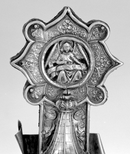 Face postérieure, fleuron supérieur : homme de saint MathieuImmatriculation
