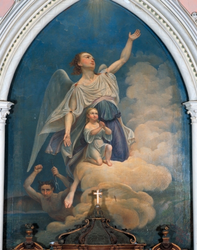 Tableau d'autel : Ange accompagnant une âme au paradis,