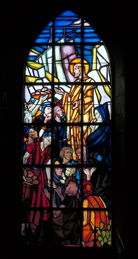 Ensemble de 13 verrières à personnages des baies 1 à 8, 10, 101 à 104, 00 : Scènes de la vie du Christ,