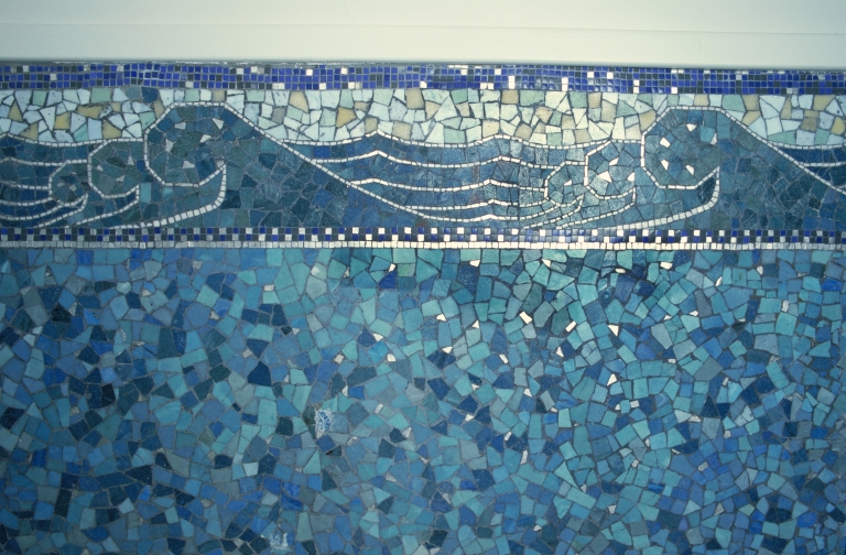 Détail de la mosaïque murale de la salle de bainImmatriculation