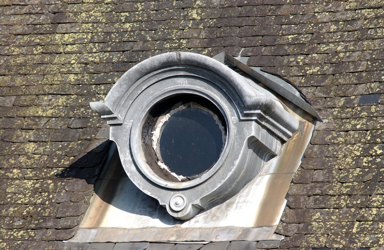 Détail : versant sud, oeil-de-boeufImmatriculation