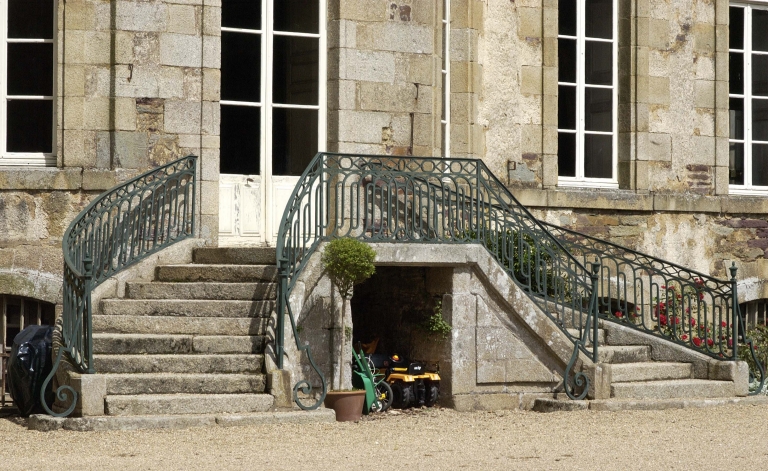 Château, façade antérieure, escalier en fer à chevalImmatriculation