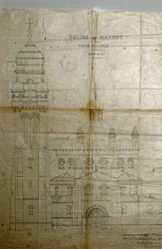 Projet d'élévation sud avec un campanile dressé en 1890 par l'architecte Arthur RegnaultImmatriculation