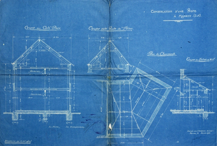 Coupes longitudinales et plans de toiture dressés en 1931Immatriculation