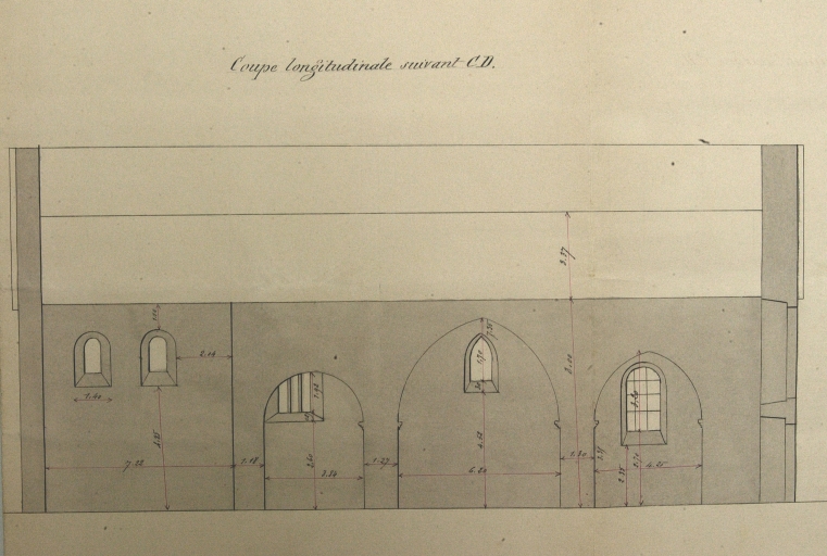 Elévation intérieure sud : coupe longitudinaleImmatriculation