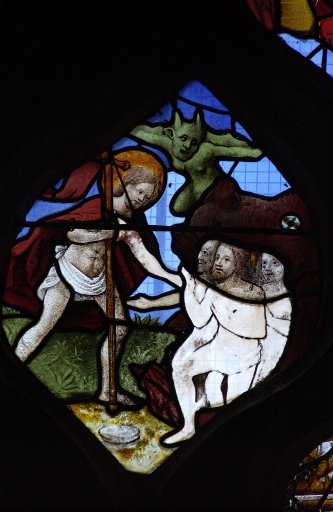 Verrière à personnages de la maîtresse-vitre (baie 0) : Passion,