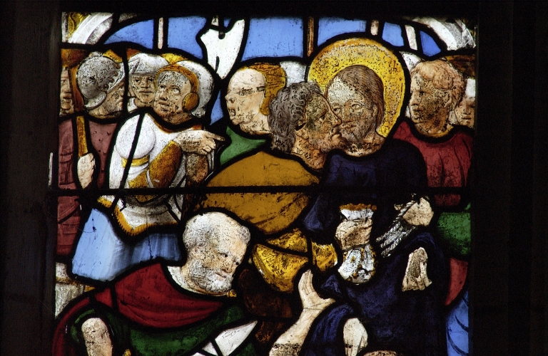 Verrière à personnages de la maîtresse-vitre (baie 0) : Passion,