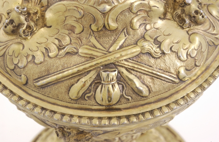Couvercle, décor : flambeau, gourdins, bourseImmatriculation
