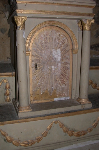 Ensemble de l'autel de la Vierge : autel, tabernacle, retable, gradin d'autel, 2 degrés d'autel,