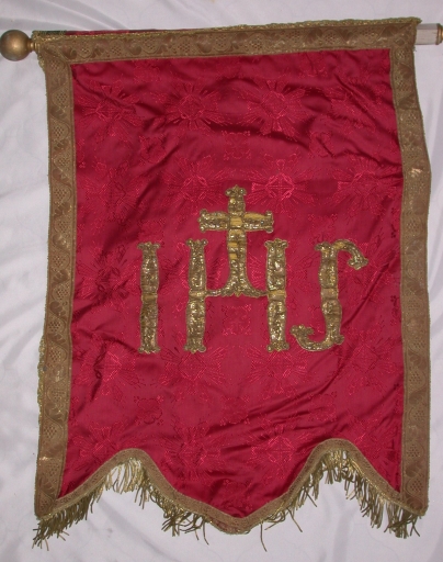 Bannière de procession paroissiale : saint Eloi (?) (Tressé fusionnée en Mesnil-Roc'h en 2019),