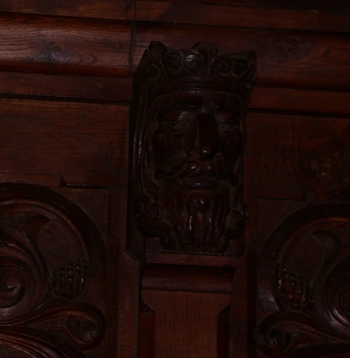Détail du décor : tête couronnéeImmatriculation