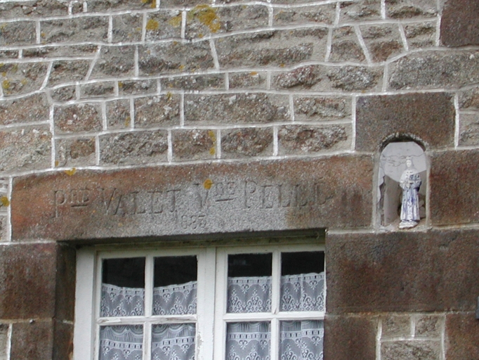 Détail : façade sud, linteau de porte gravé et niche à statueImmatriculation