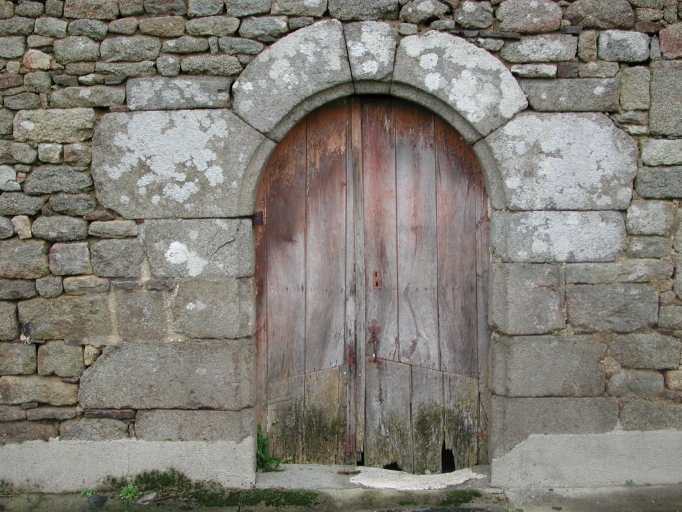 Détail : façade sud, le porte plein-cintre à délardement concaveImmatriculation