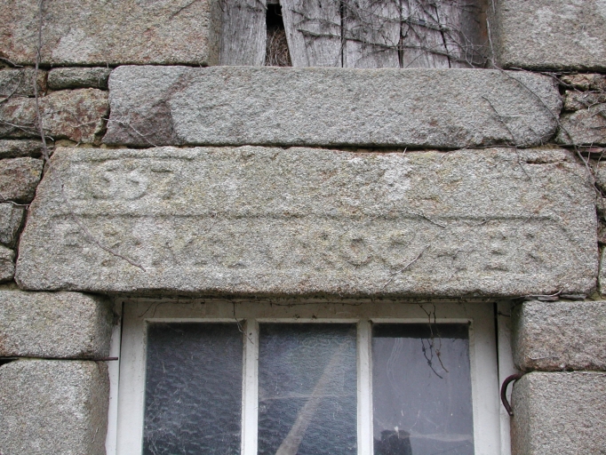 Détail : pierre gravée '1637 / F:P:M:IV:ROCHER'Immatriculation