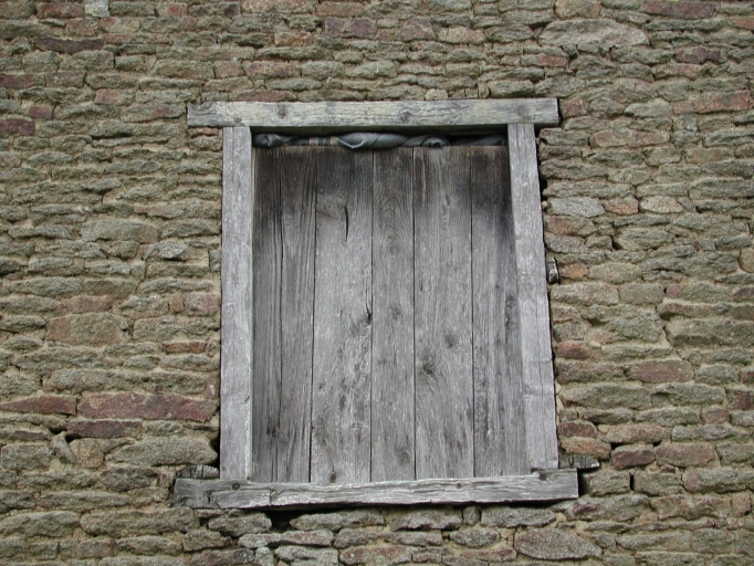 Détail : gerbière ménagée dans un pignon de moellons de granite selon la technique de la 'carrée' utilisée dans l'architecture en terreImmatriculation