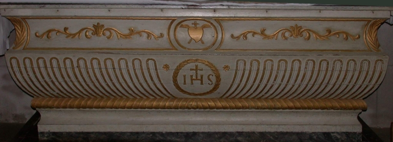 Ensemble de l'ancien maître-autel : autel, tabernacle, 3 gradins d'autel, degré d'autel,