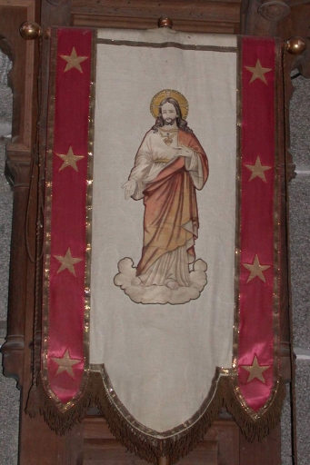 Paire de bannières de procession : Immaculée Conception, Sacré Coeur,