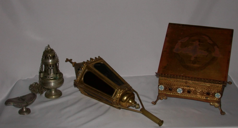 Navette à encens, encensoir, lanterne de procession et pupitre-thaborImmatriculation