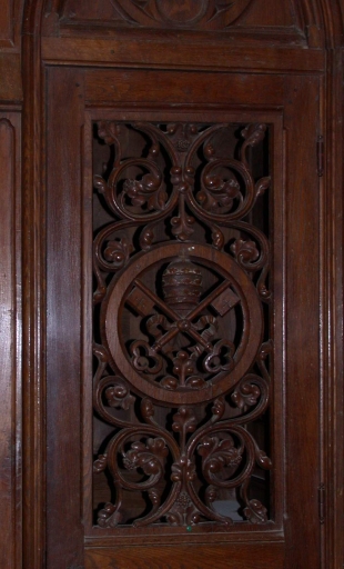 Décor du portillon : insignes pointificalesImmatriculation