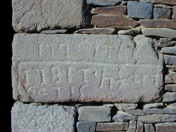 Ancien logis, pierre de remploi gravée d'inscriptions : détailImmatriculation
