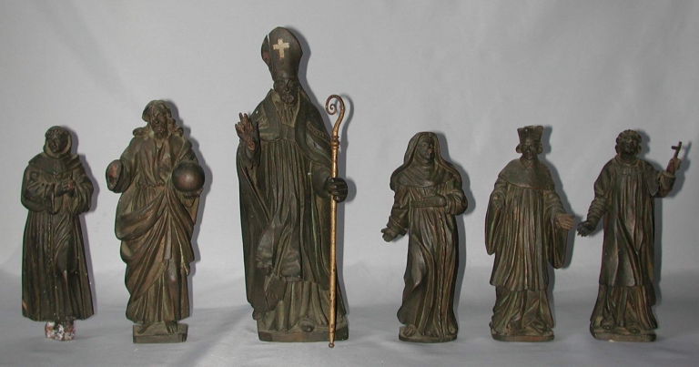 Ensemble de 10 statuettes : Christ, saint Martin, saint Yves, saint Jean de la Croix (?), sainte Thérèse d'Avila, saint François d'Assise,