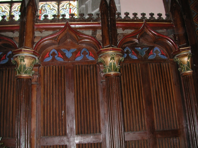 Décor de choeur : lambris de demi-revêtement, 2 stalles, 3 bancs de choeur,