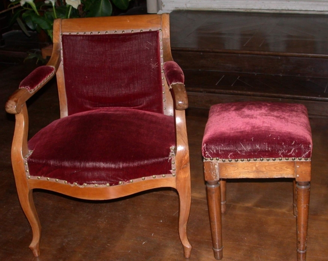 Fauteuil de célébrant et tabouret : vue généraleImmatriculation