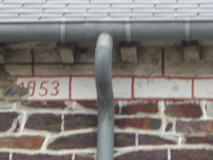 Détail du faux appareil peint avec date partiellement illisible : 1853 (?)Immatriculation