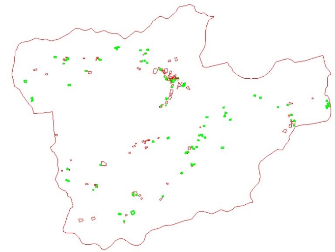 Carte des maisons et fermes recensées : en vert, les oeuvres non documentéesImmatriculation